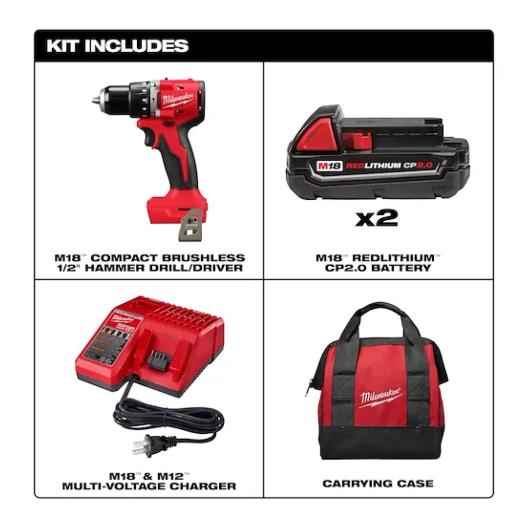 KIT DE TALADRO PERCUTOR/DESTORNILLADOR COMPACTO SIN ESCOBILLAS M18 DE 1/2" 3602-22CT